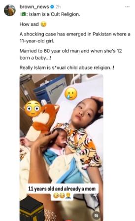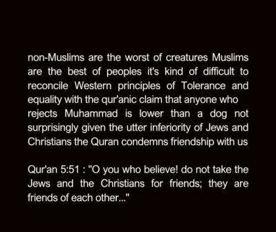 [Satanic religion (like most of them). Child abuse eg: Khitan (Islamic circumcision), Extreme misogyny eg: Female genital mutilation, hijab, stoning to death for adultery, acid attacks, execution for showing hair, slavery, legal paedophilia.]