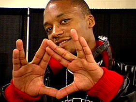 Masonic hand grip with his left hand. This is called the "cover grip." (Duncan's