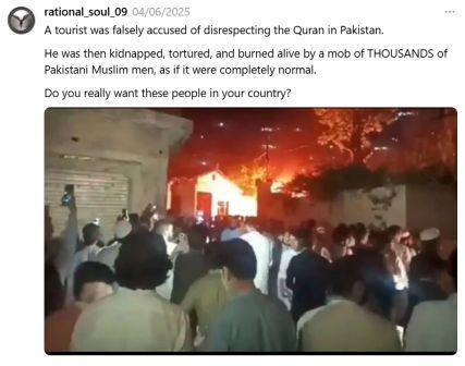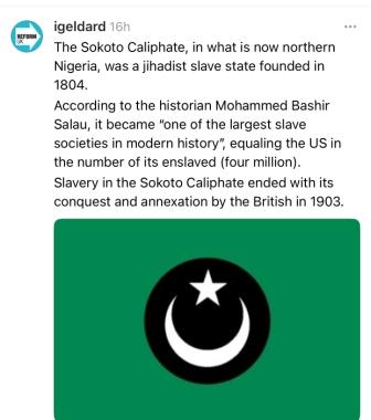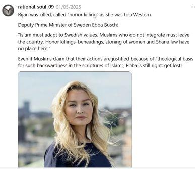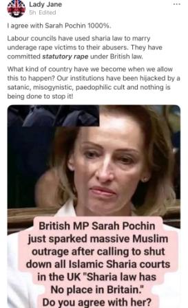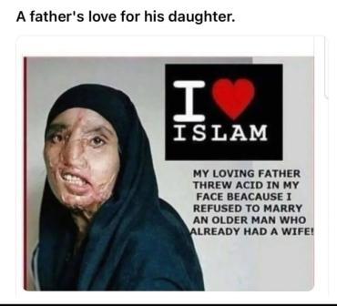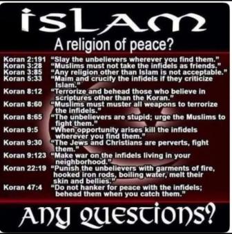 [Satanic religion (like most of them). Child abuse eg: Khitan (Islamic circumcision), Extreme misogyny eg: Female genital mutilation, hijab, stoning to death for adultery, acid attacks, execution for showing hair, slavery, legal paedophilia.]