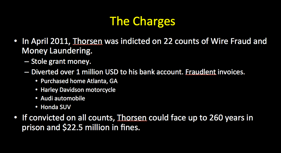[2011 Oct] CDC Director Arrested for Child Molestation and Bestiality By Dr. Mercola    Another shocking case involving the CDC is that of Dr. Poul Thorsen, who, after being found to have falsified documents, was indicted on fraud, money laundering and tax evasion after stealing somewhere between $1-2 million in research grant money from the CDC.