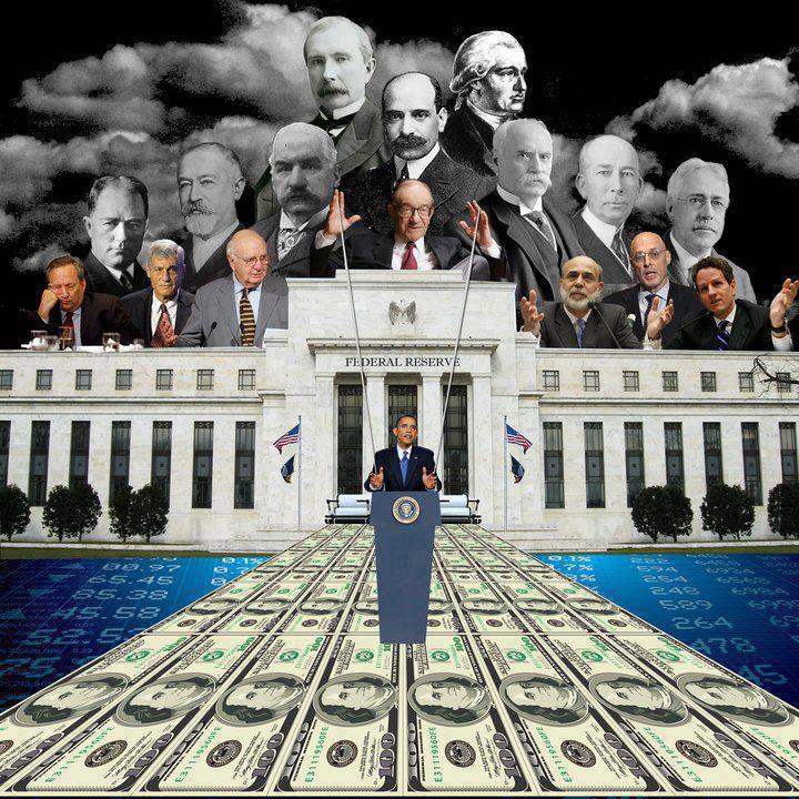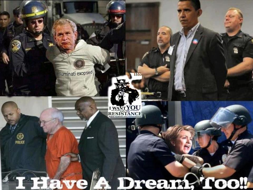Pathocracy banners: Bush Blair Clinton, Hilary Gates, Bill Kissinger Netanyahu Obama, Michelle Romney